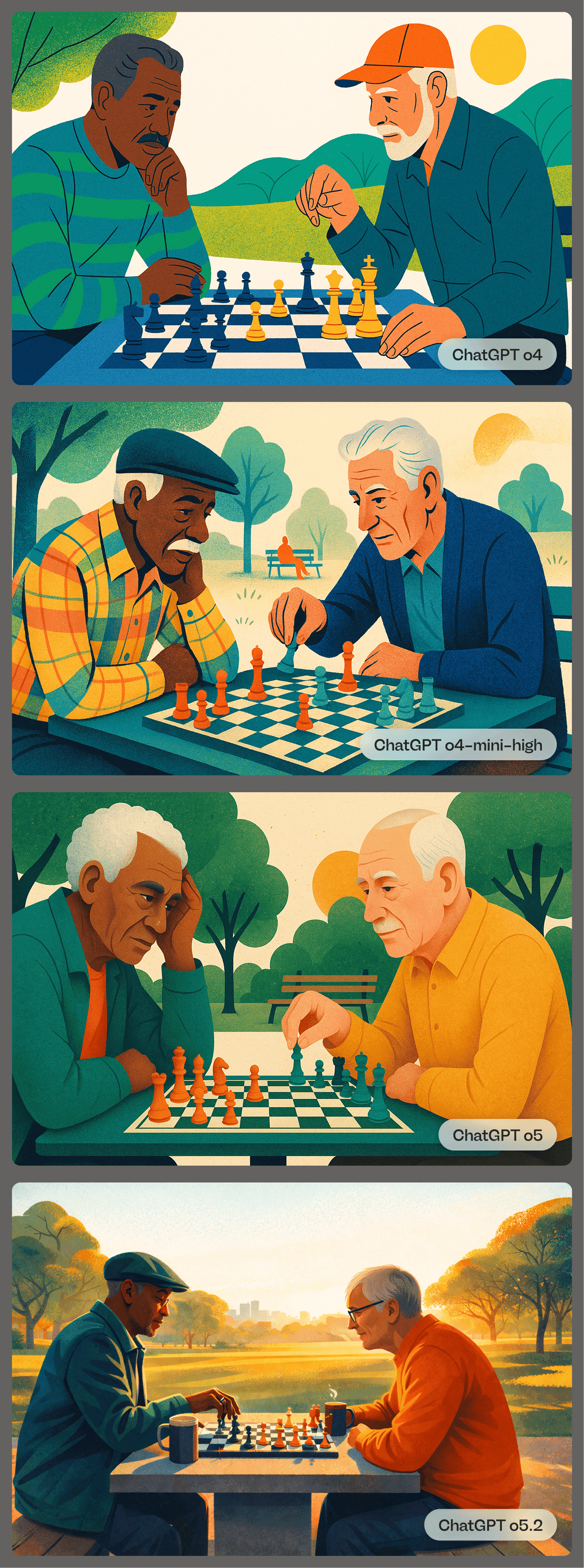 When ChatGPT 5.2 released we noticed another massive drift to photorealism. Even when the prompt included words like “illustration” the output was drastically different than our goal style.