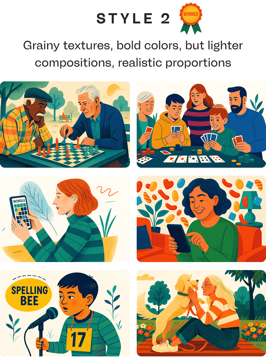 At a certain point, we had to accept that there were just some limitations with how far we could push the AI in getting the results we wanted with that version of ChatGPT. But our initial exploration allowed us to get signal around how valuable illustration could be as a brand component.