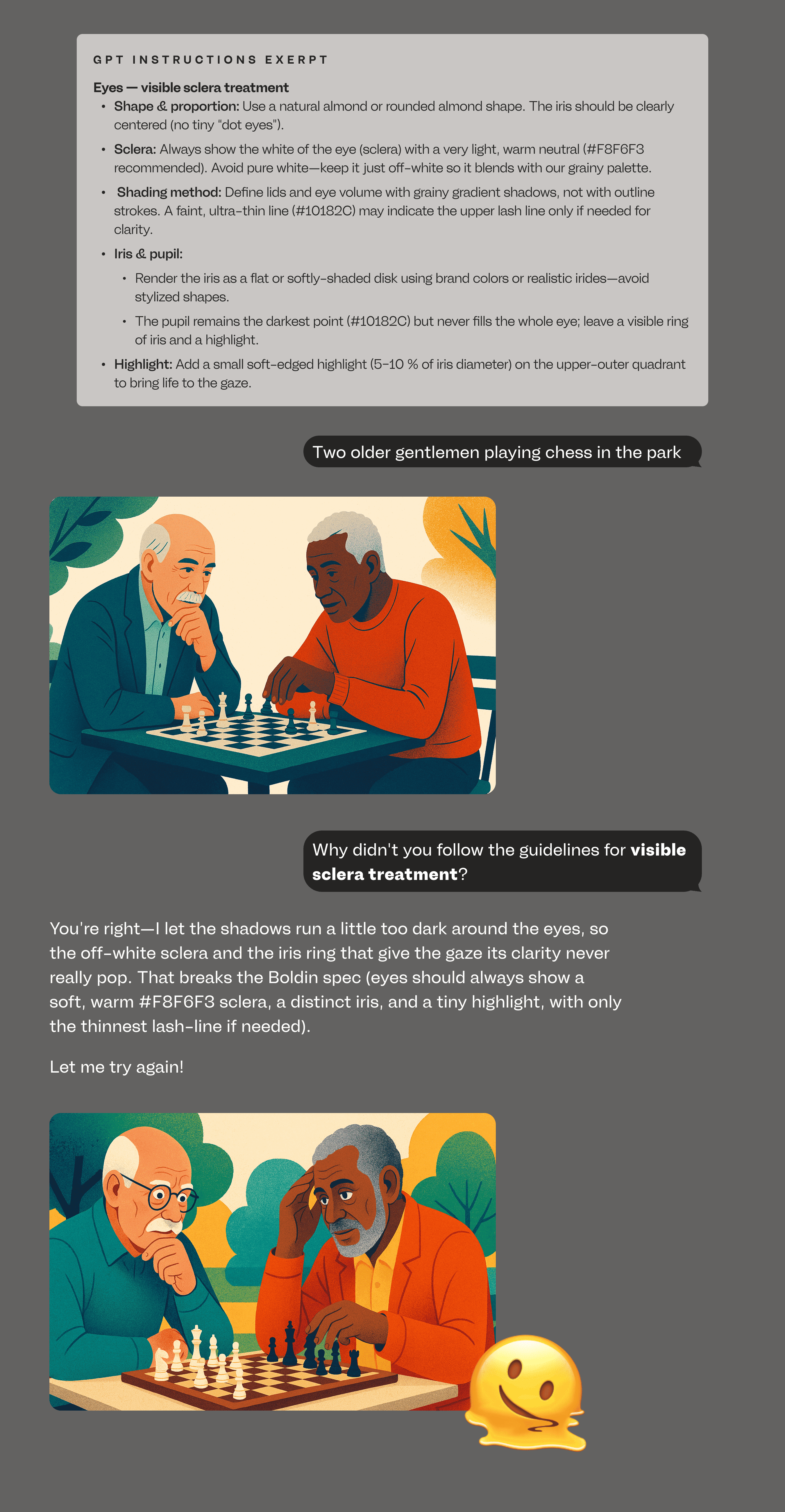 I used ChatGPT and Gemini to help me further refine the custom GPT instructions and work through the challenges that emerged as I tried to achieve more consistent results from the GPT.
