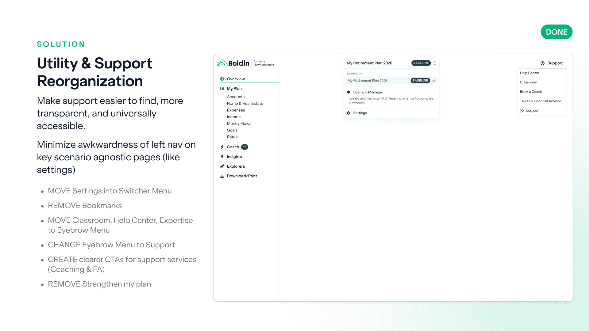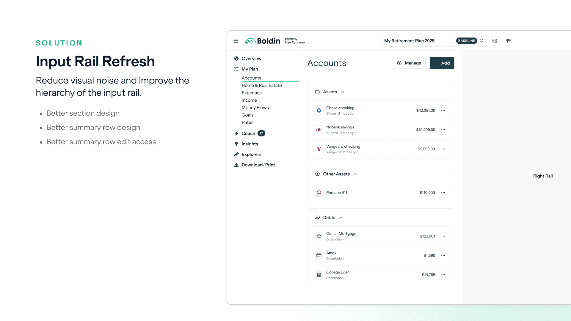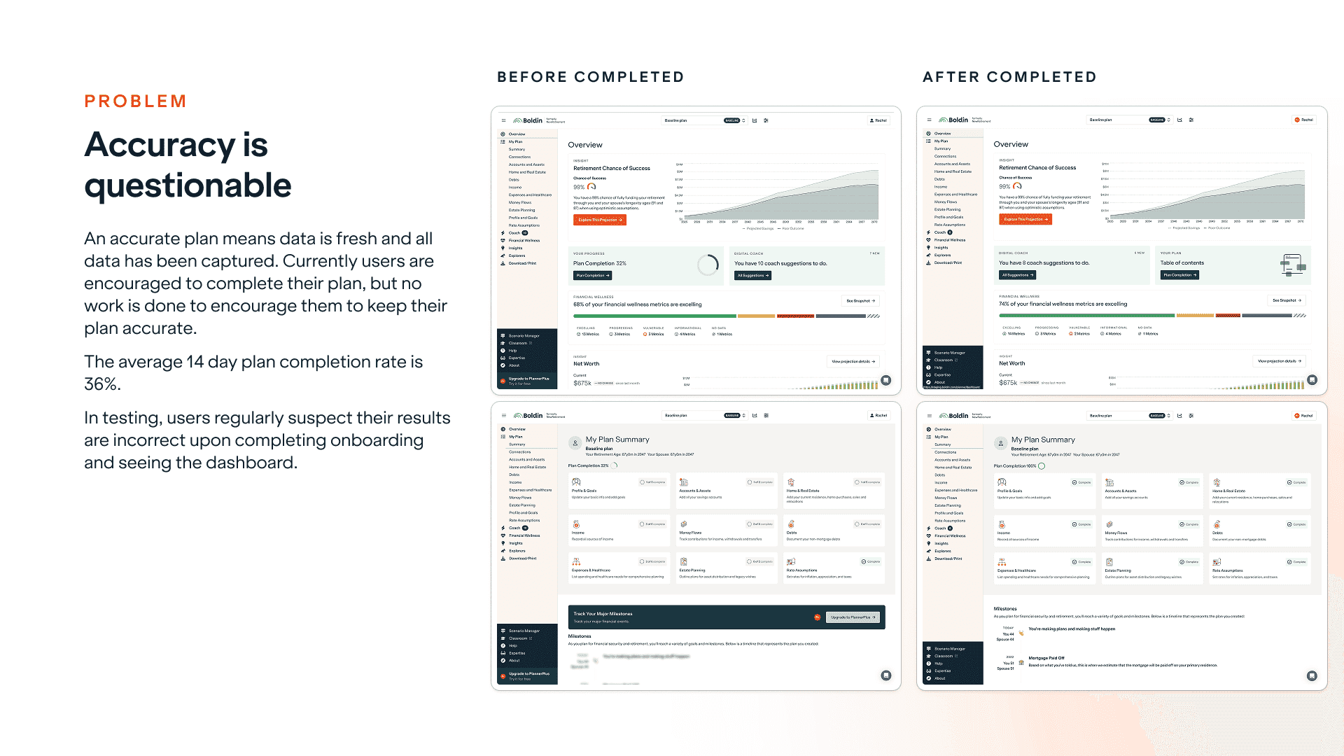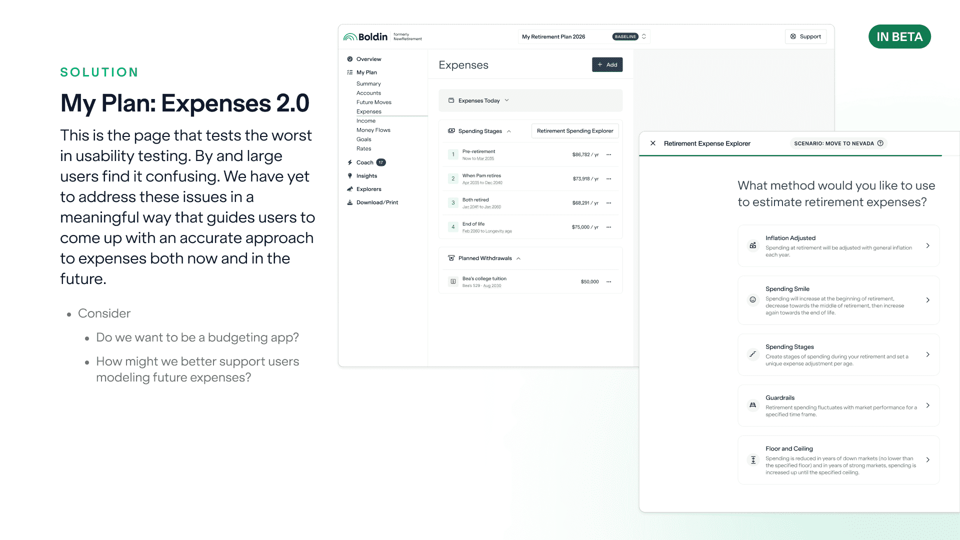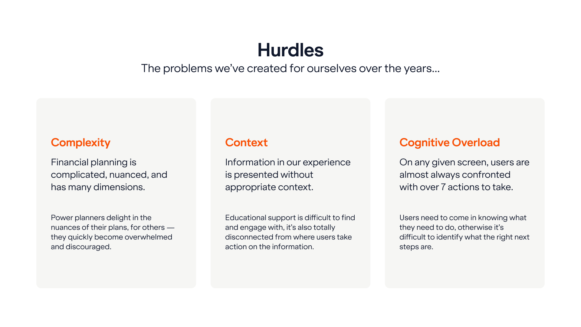 In early 2025, everything shifted: a new Chief Product Officer, a new brand, new personas, and a new OKR—move to the mainstream. Historically, we’d built for Power Planners: people who love spreadsheets and genuinely enjoy nerding out on retirement planning. But to grow, we needed to resonate with a broader audience—people who want clarity and confidence, not a new hobby. The brand helped signal that shift, but the product experience still spoke Power Planners.