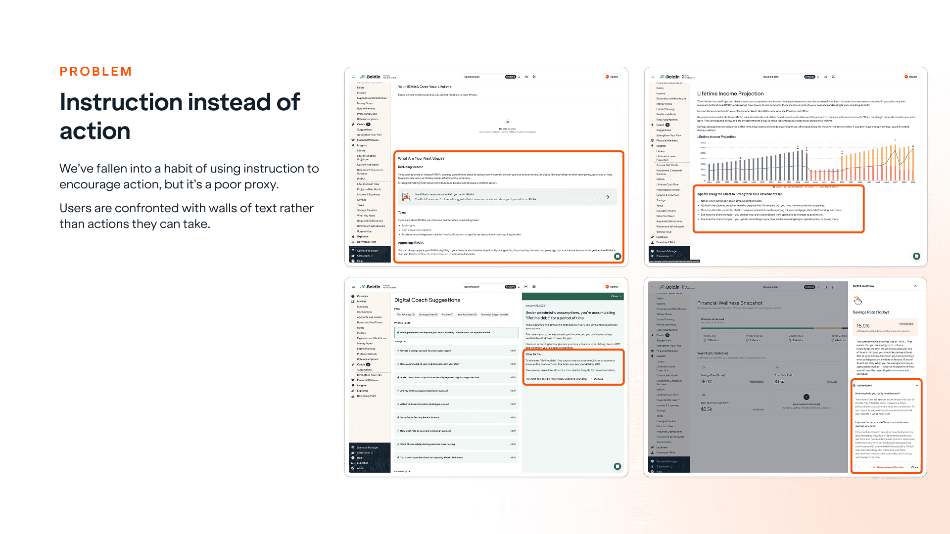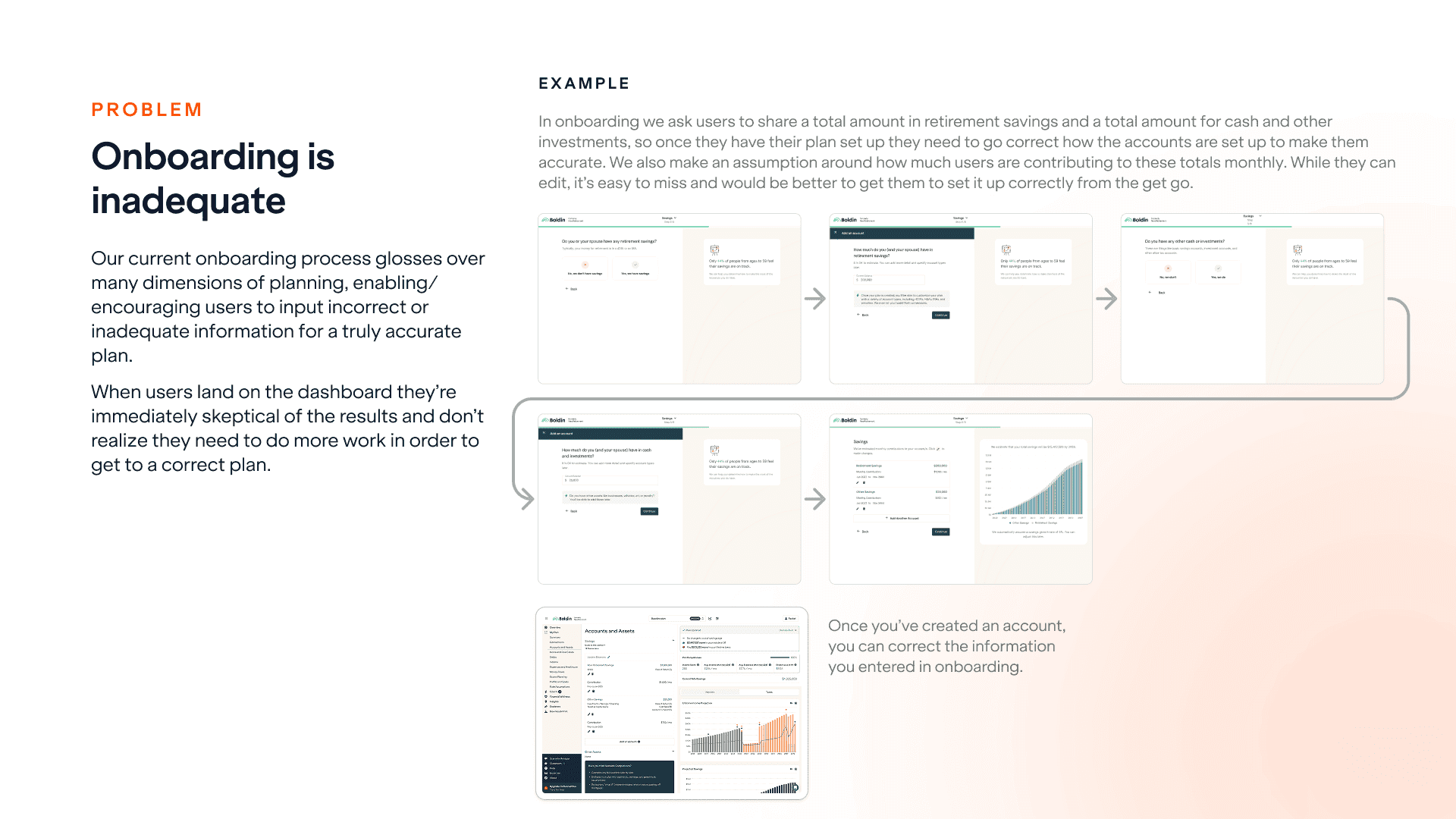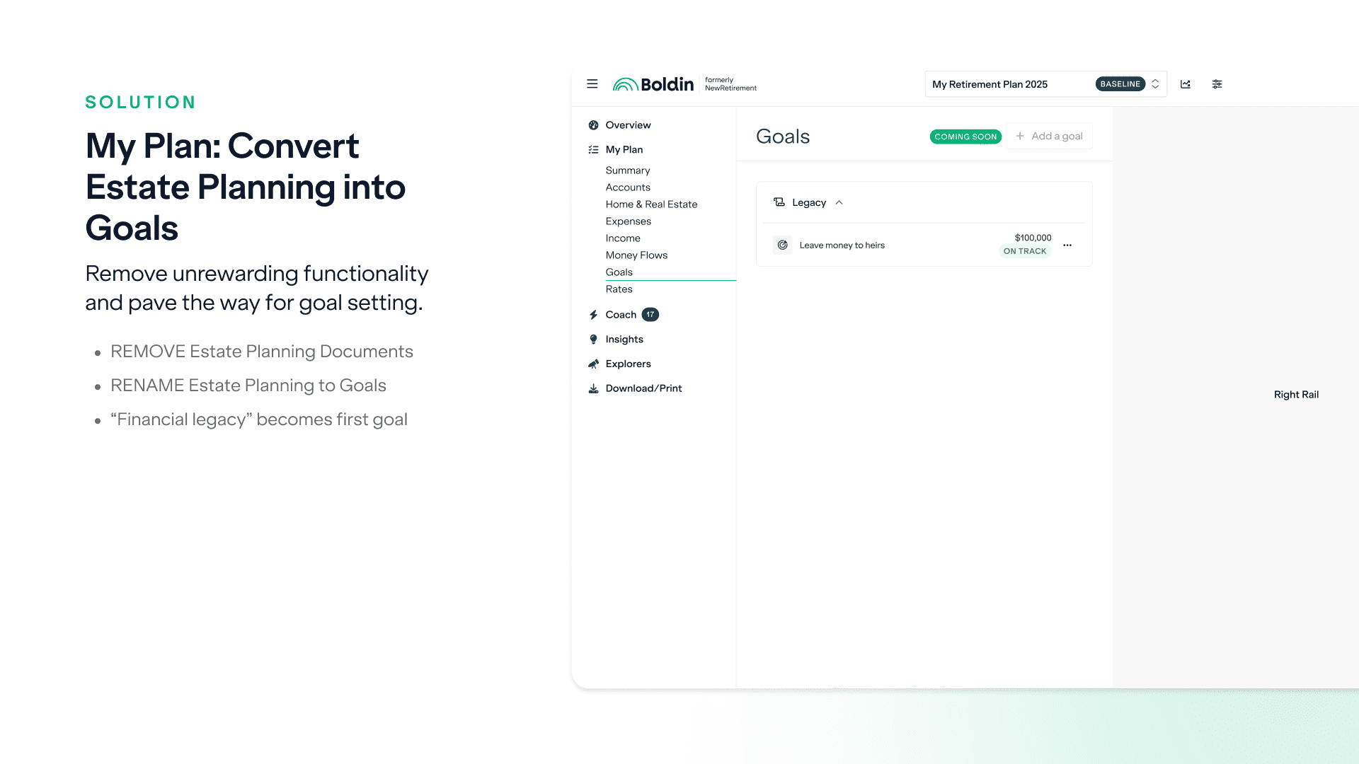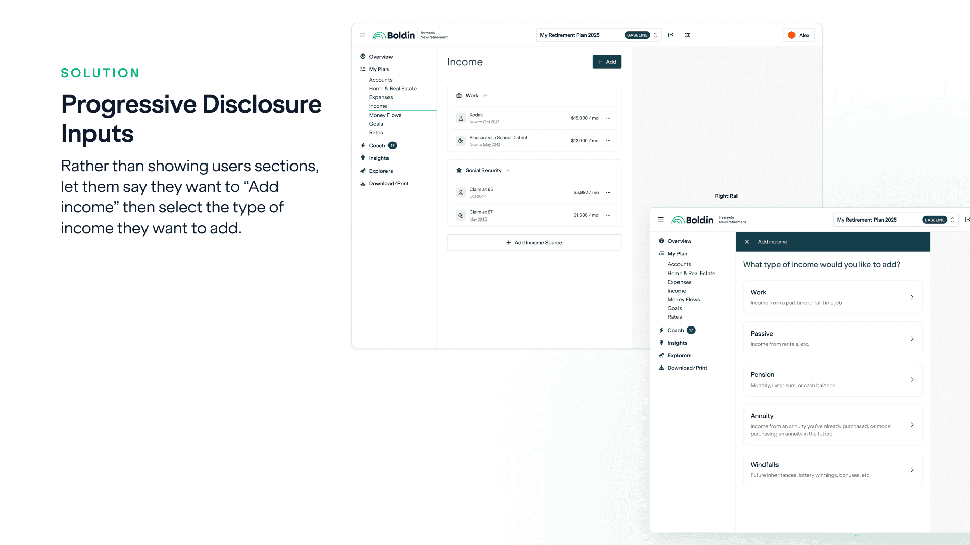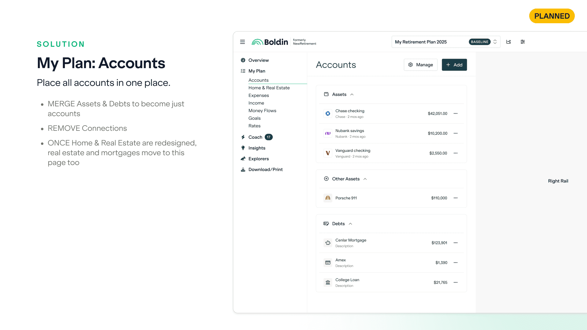 In early 2025, everything shifted: a new Chief Product Officer, a new brand, new personas, and a new OKR—move to the mainstream. Historically, we’d built for Power Planners: people who love spreadsheets and genuinely enjoy nerding out on retirement planning. But to grow, we needed to resonate with a broader audience—people who want clarity and confidence, not a new hobby. The brand helped signal that shift, but the product experience still spoke Power Planners.
