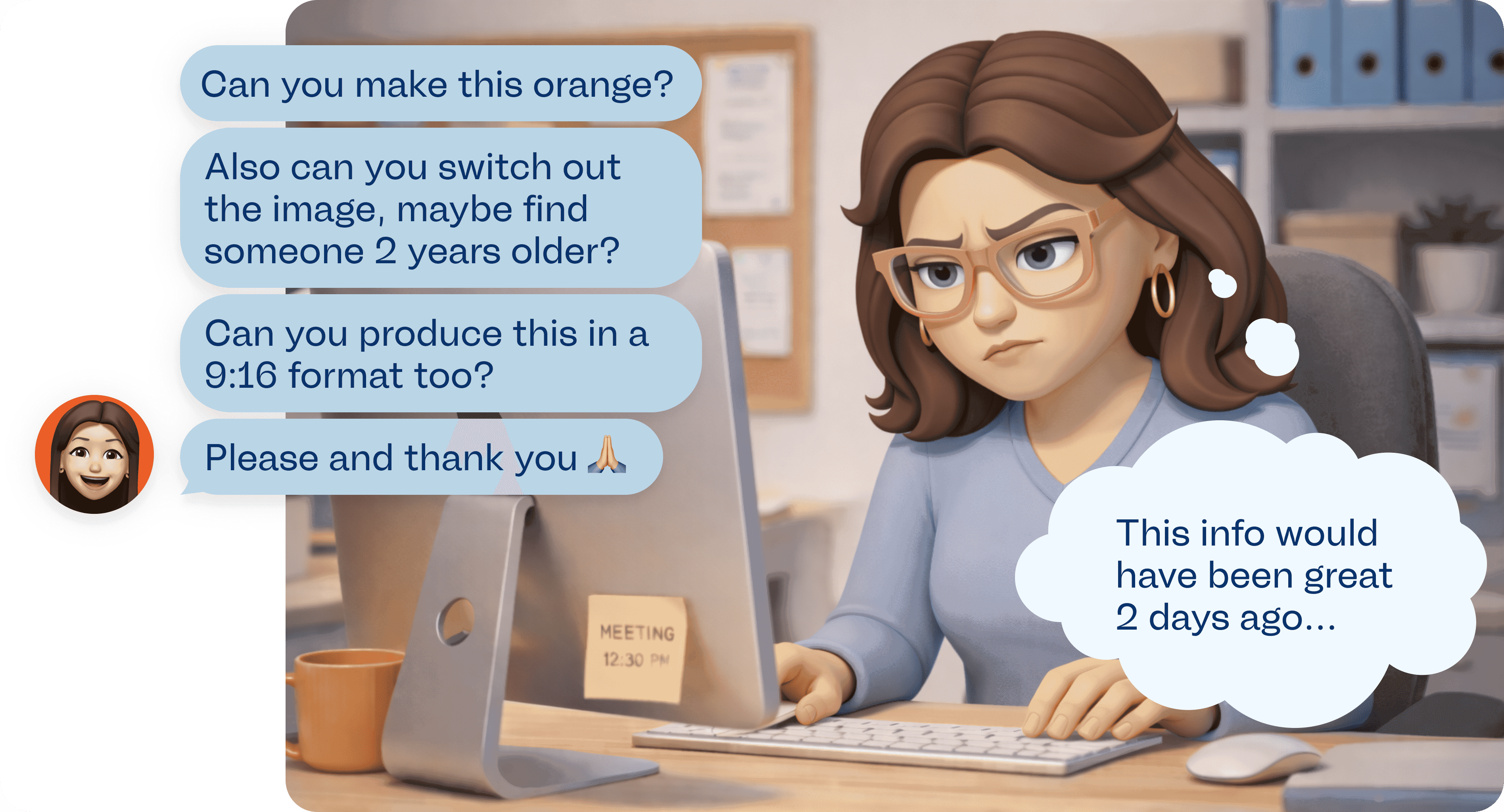 Feedback on design work from marketing was slow, design couldn’t predict when they’d need to interrupt their other work to urgently make the next iteration